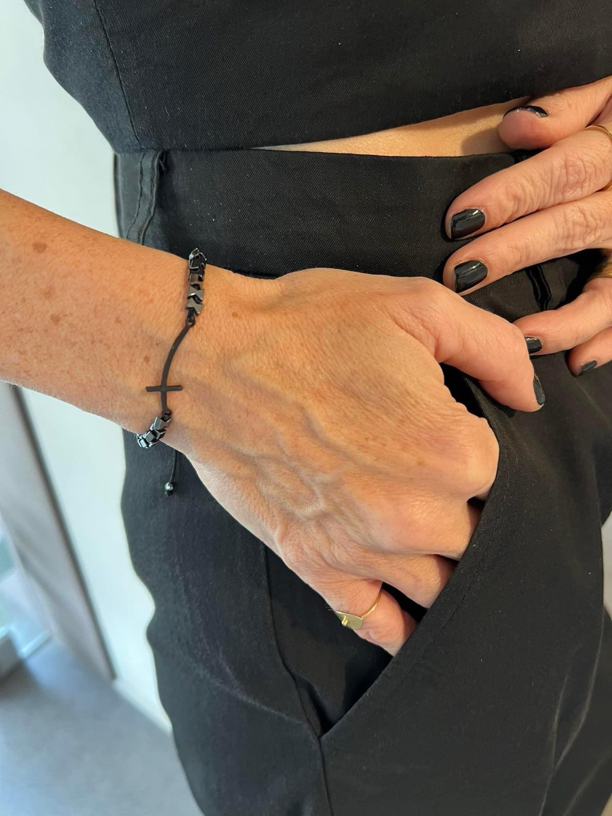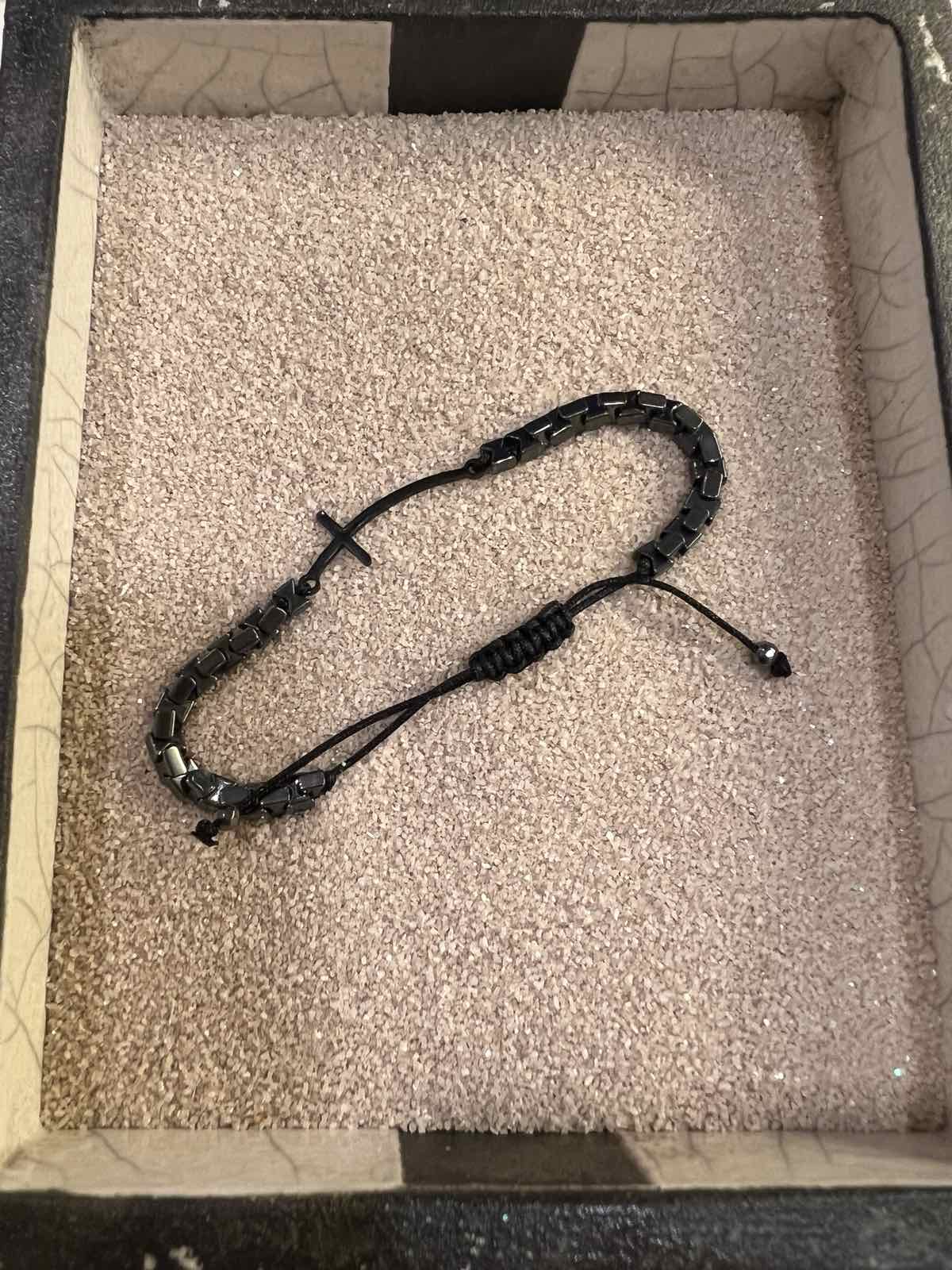 Βραχιόλι με σταυρό από αιματίτη.Το κούμπωμα αυξομειώνει.