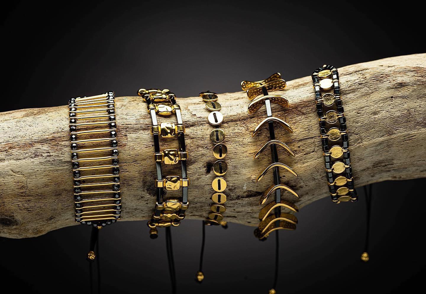 Βραχιόλι με αιματίτες και μεταλλικά στοιχεία. Το κούμπωμα αυξομειώνει.