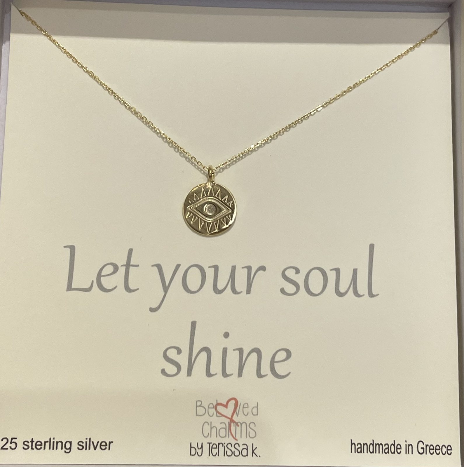 Eye–triangle gold-plated silver necklace with black chain