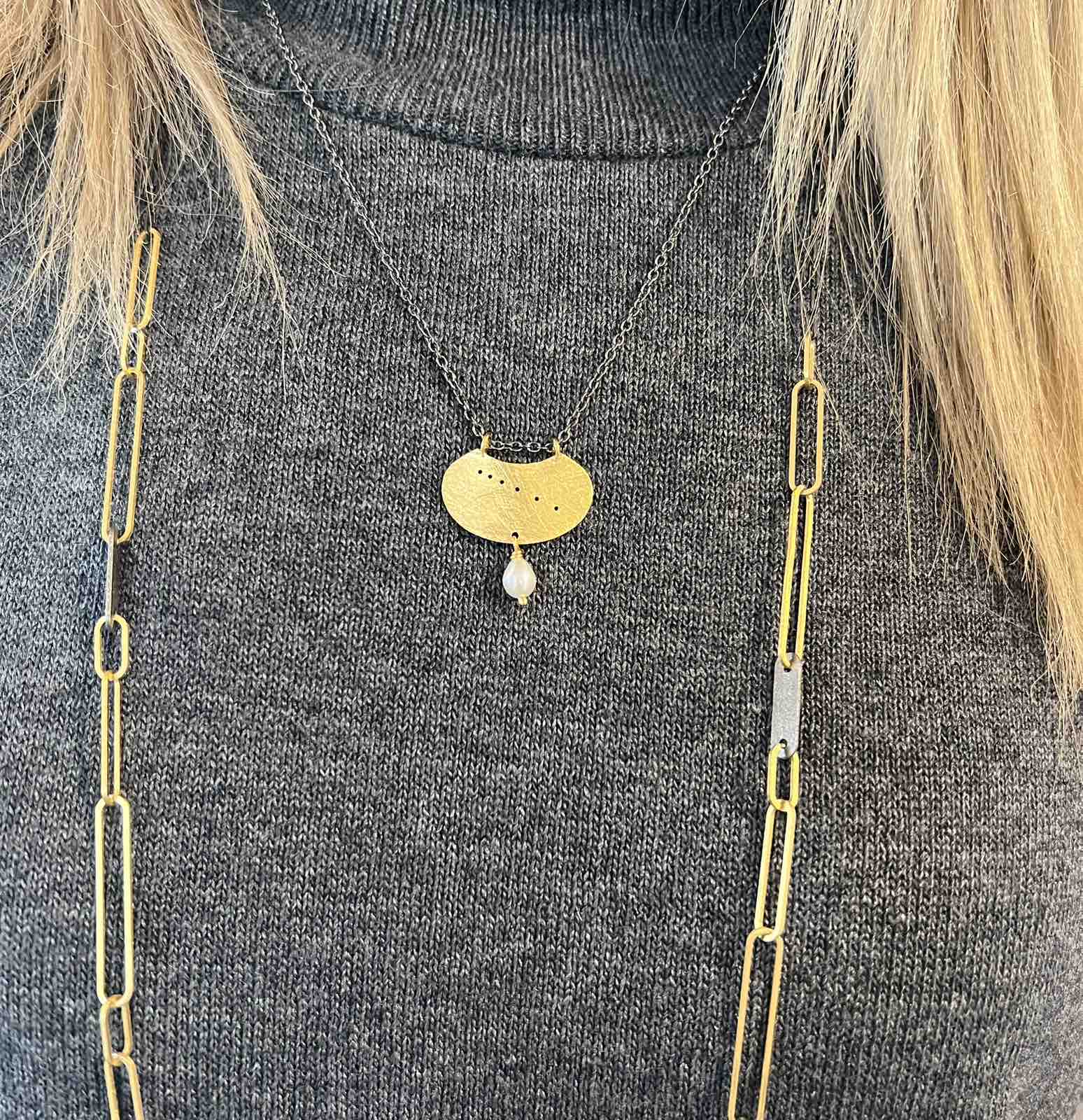Κολιέ ασημένιο επιχρυσωμένο με μαργαριτάρι