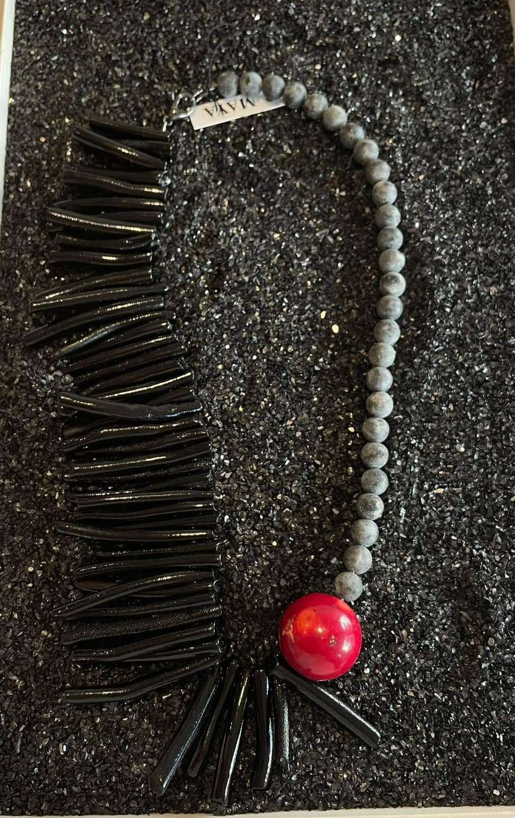 Μακρύ κολιέ με ασημένια στοιχεία