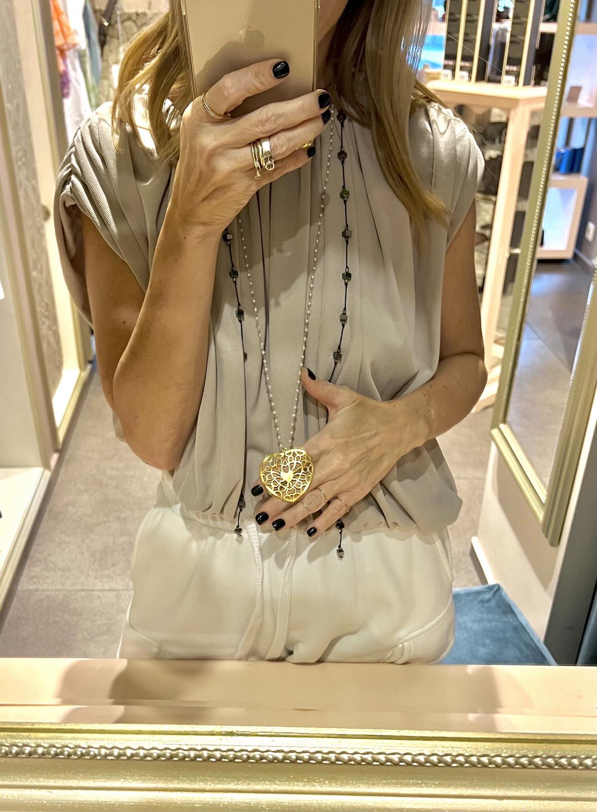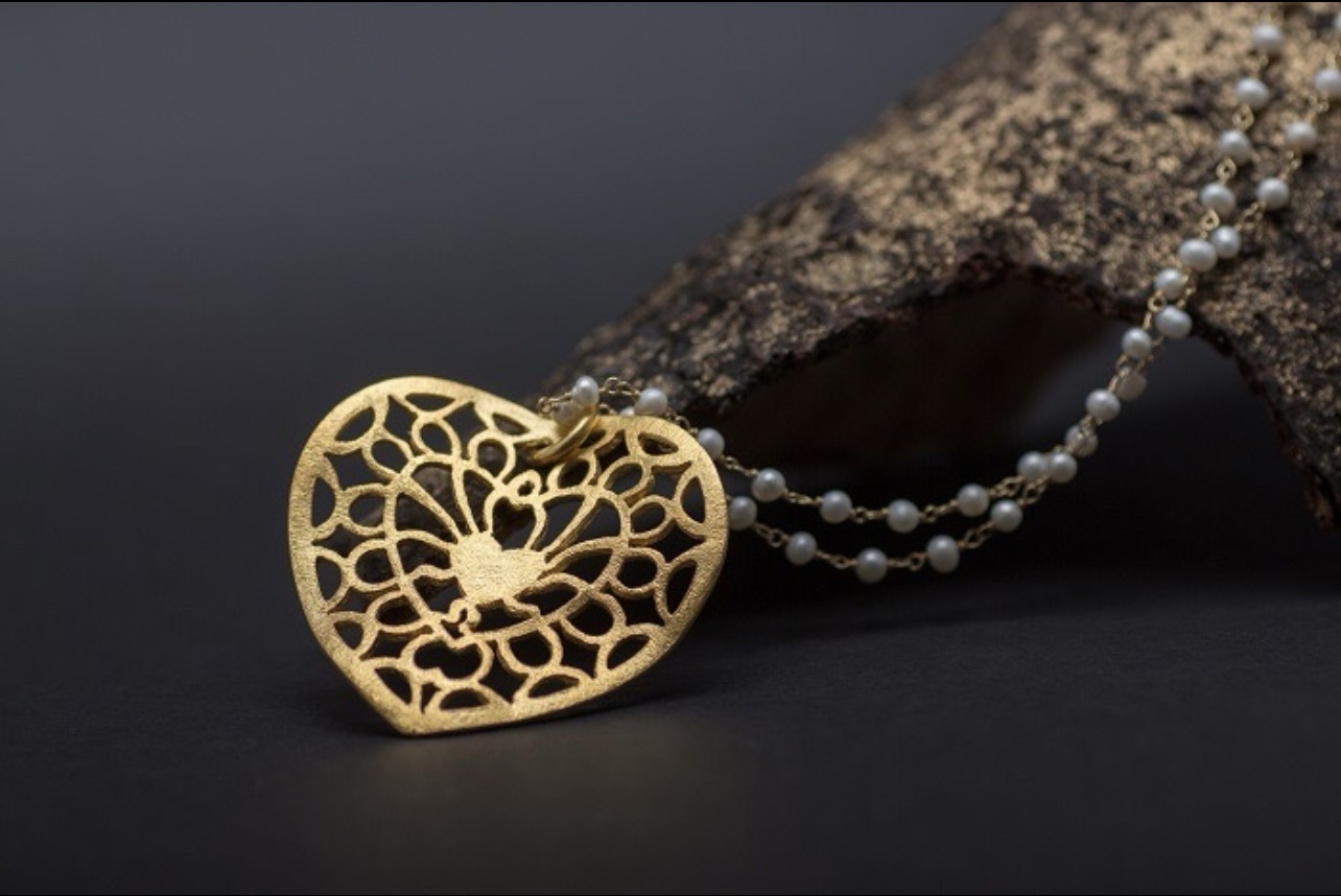 Χειροποίητο κολιέ με ασήμι επιχρυσωμένο και μαργαριτάρι.