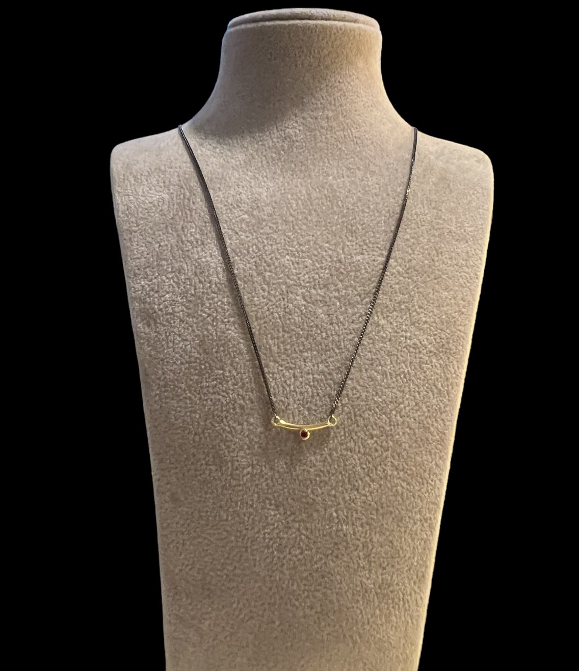 Κολιέ με αλυσίδα σε μαύρο χρώμα με κρεμαστό χρυσό 14κ. με ρουμπίνι.