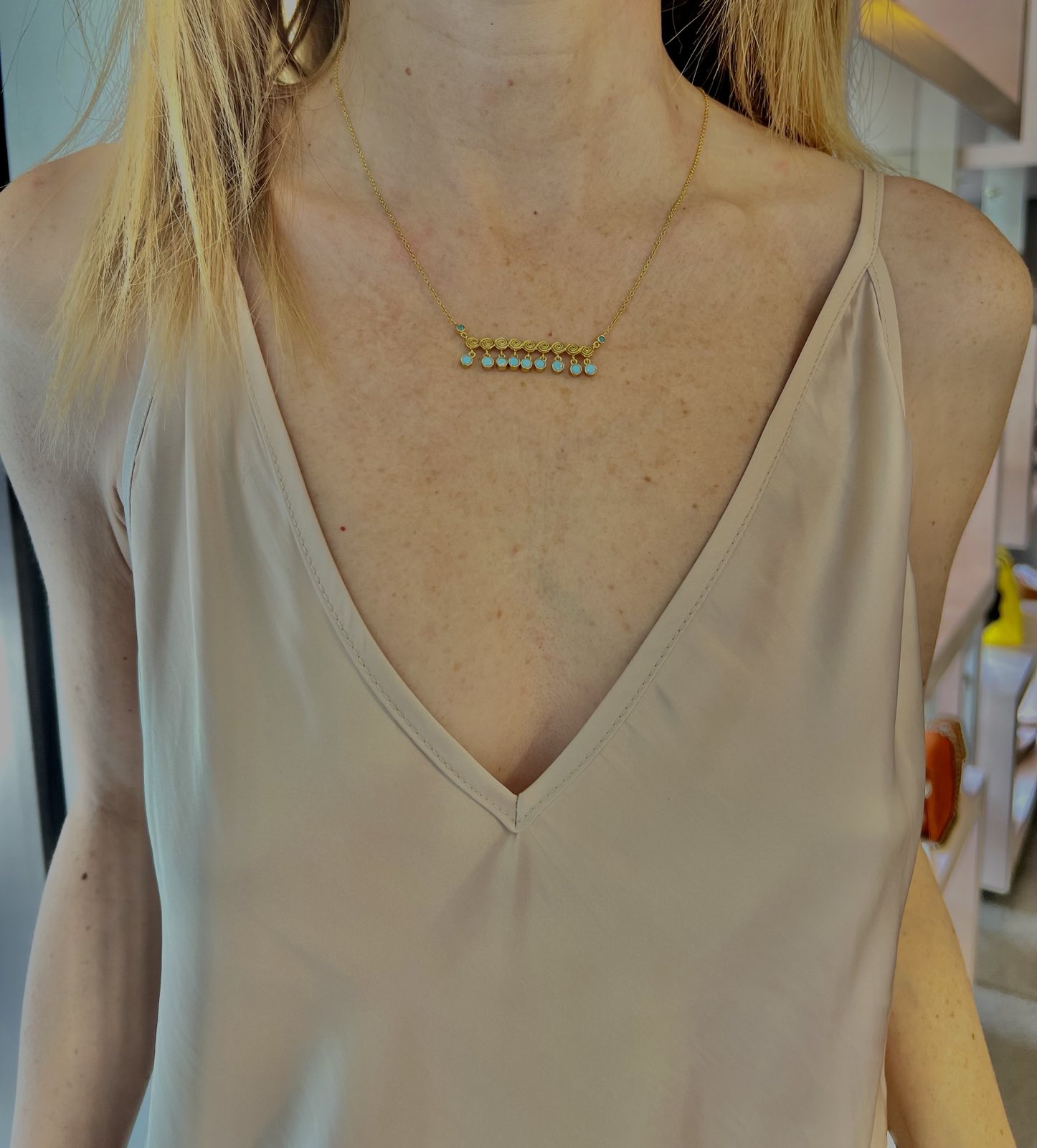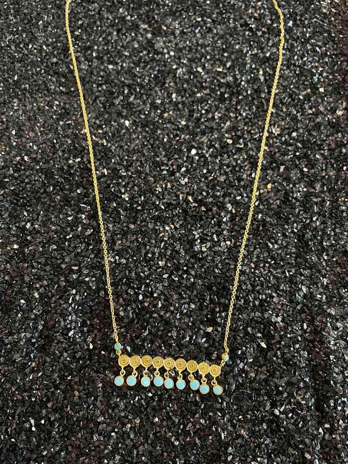Κολιε ασημενιο επιχρυσωμενο με γαλαζια στοιχεια
