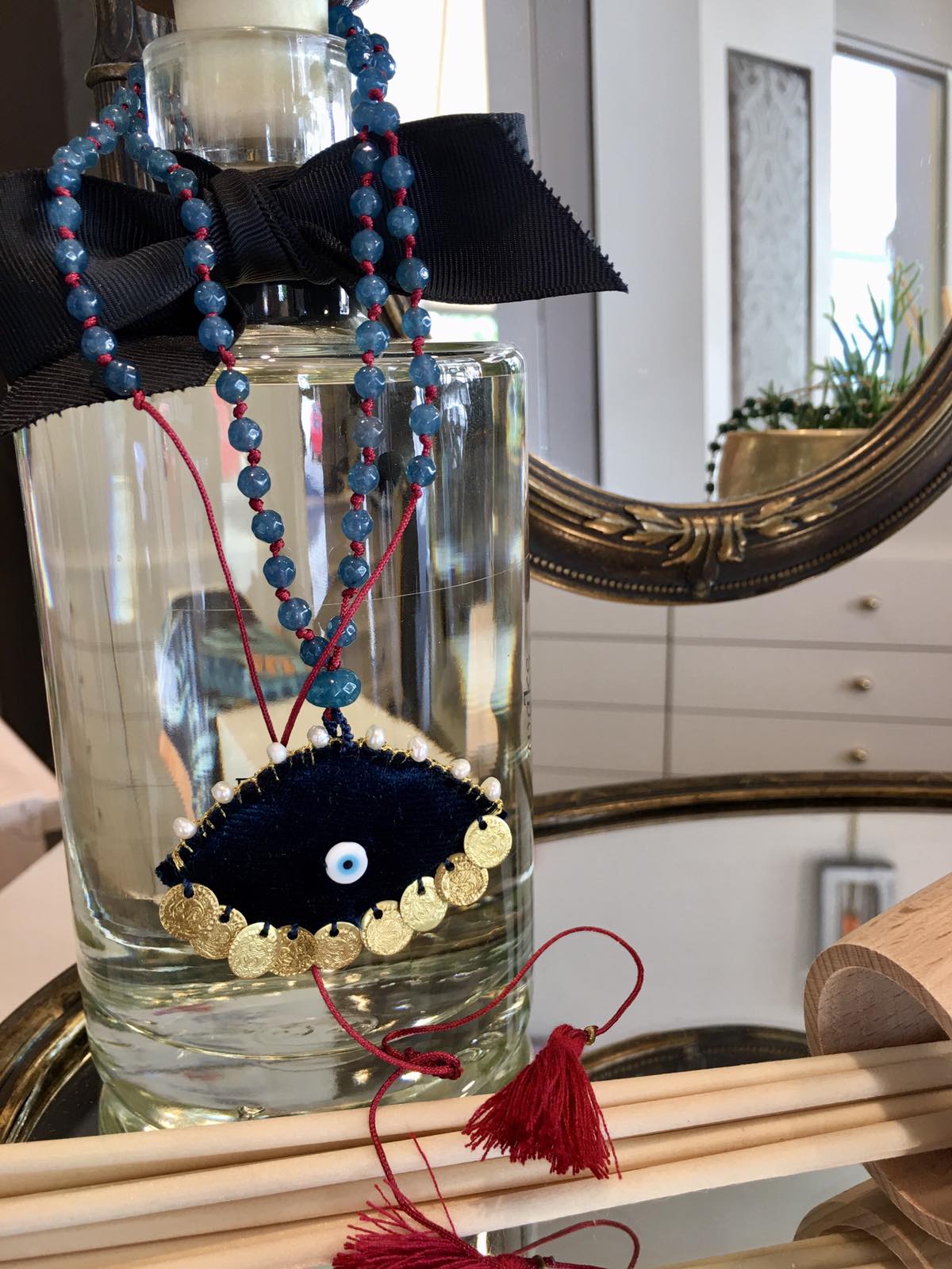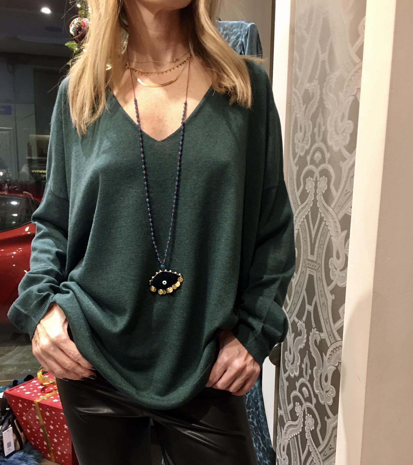 Long necklace burgundy velvet