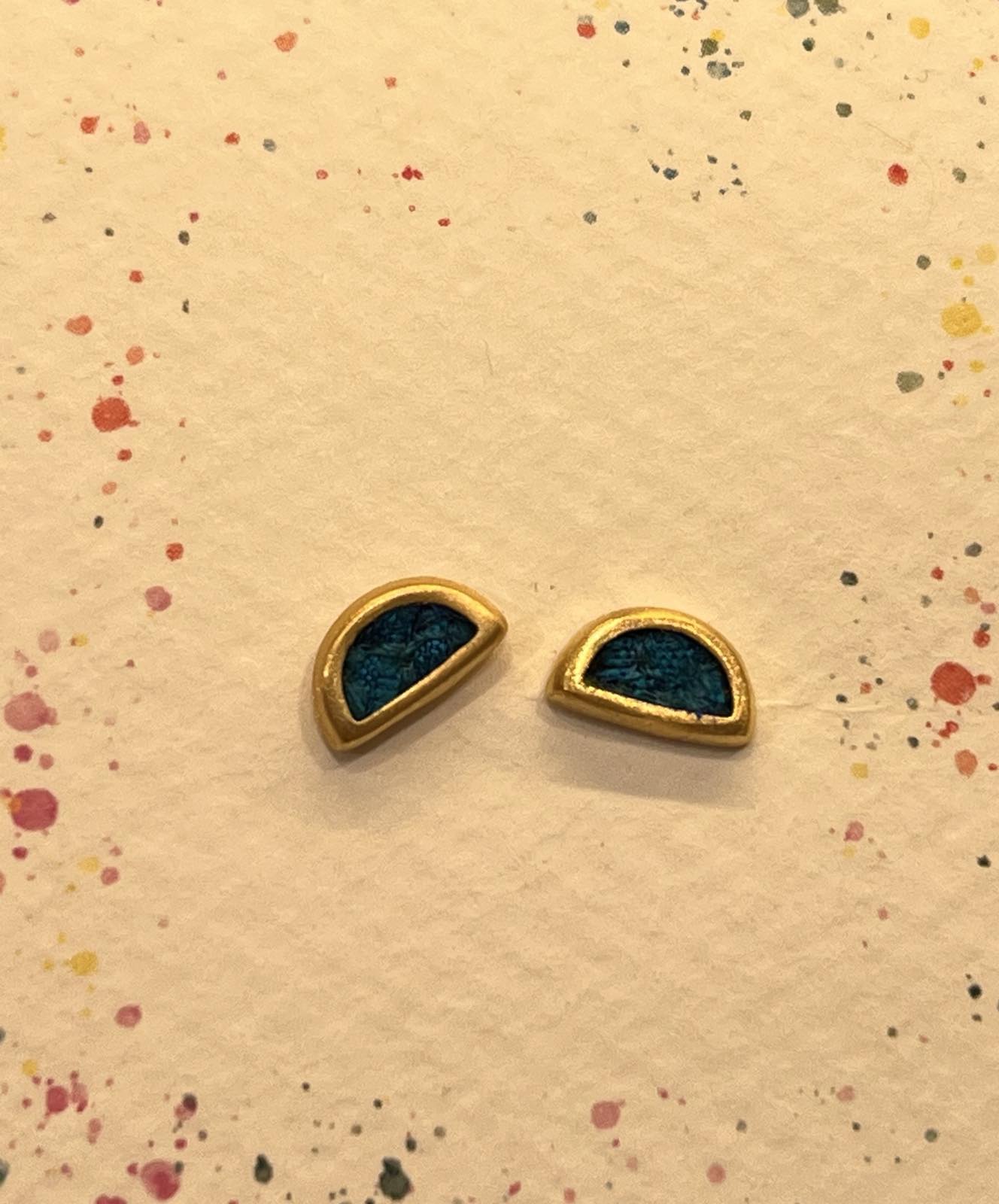 Silver earrings gold plated with silk