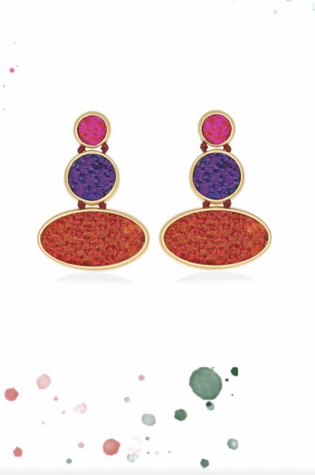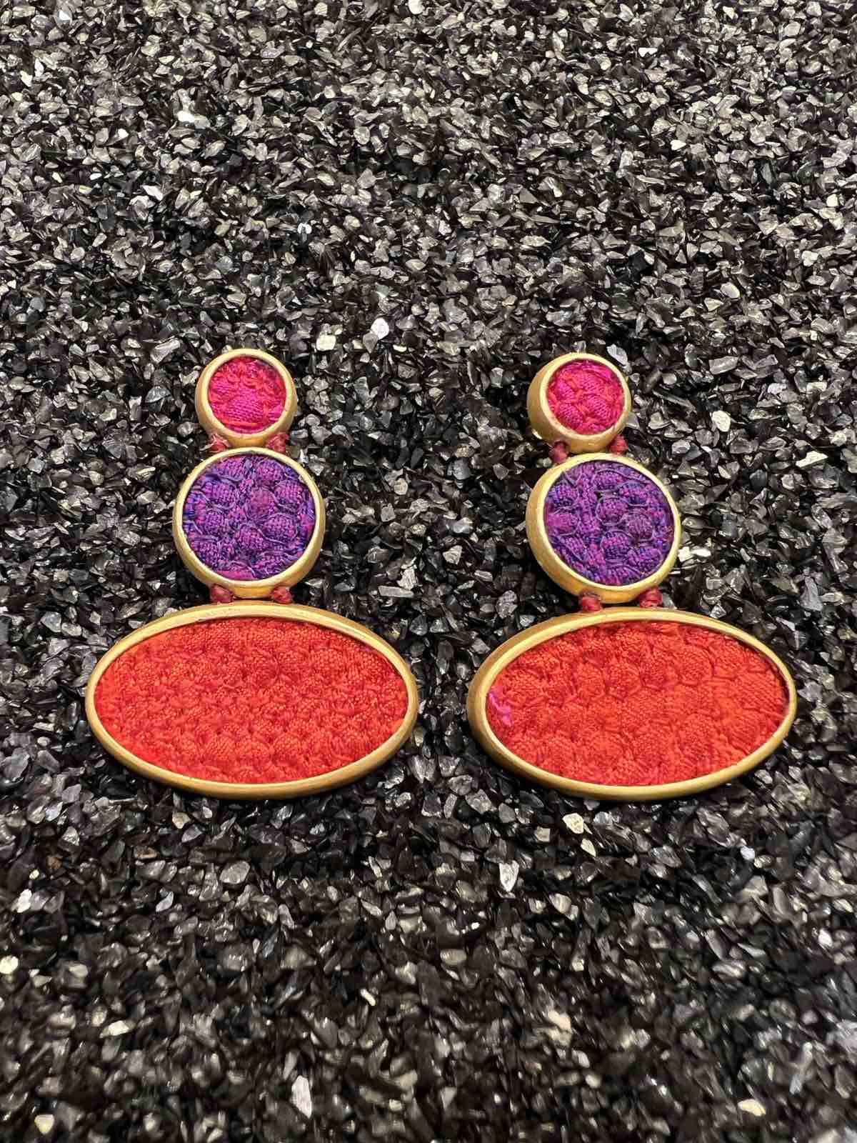Silver earrings gold plated with silk
