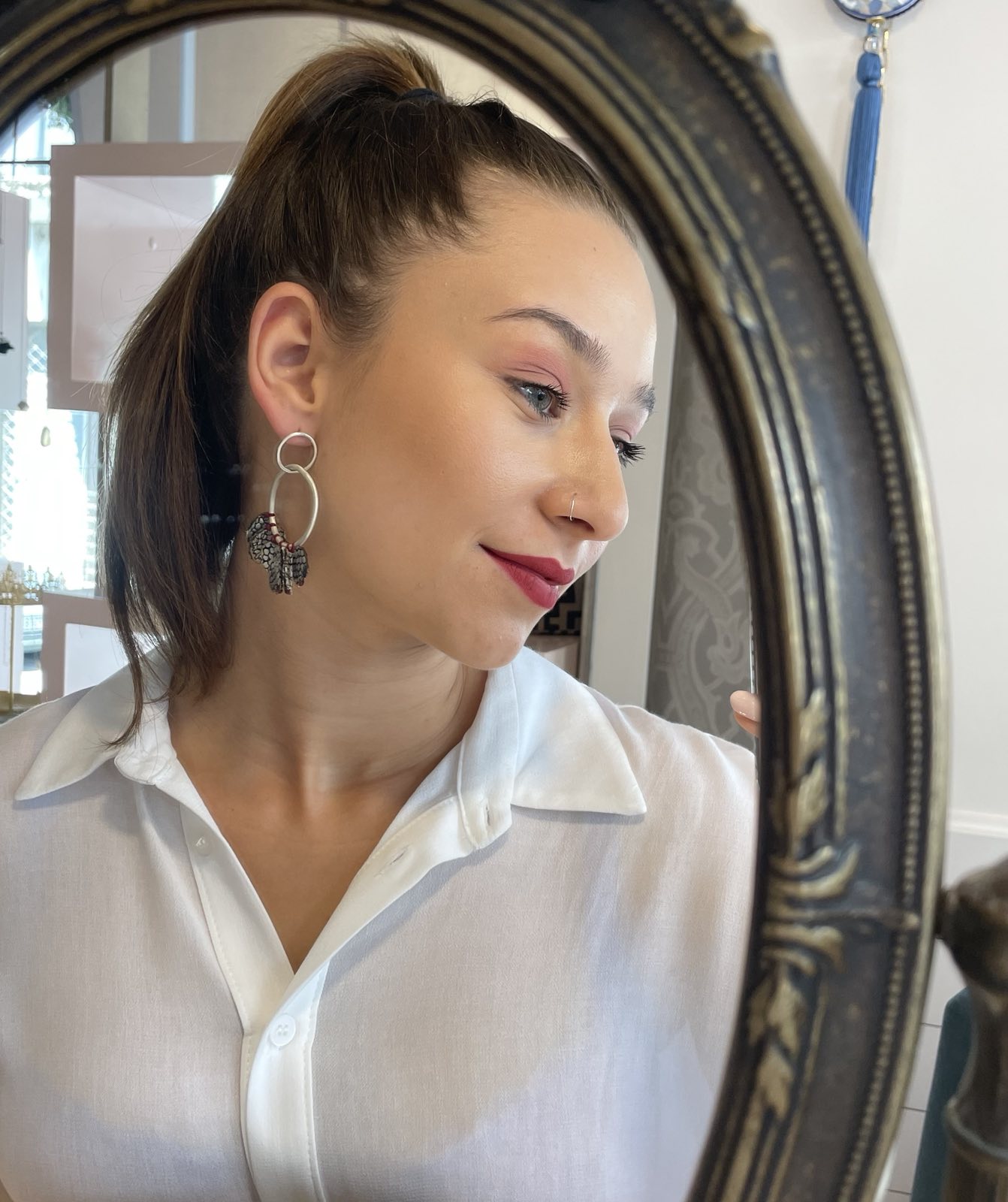 Silver earrings with silk