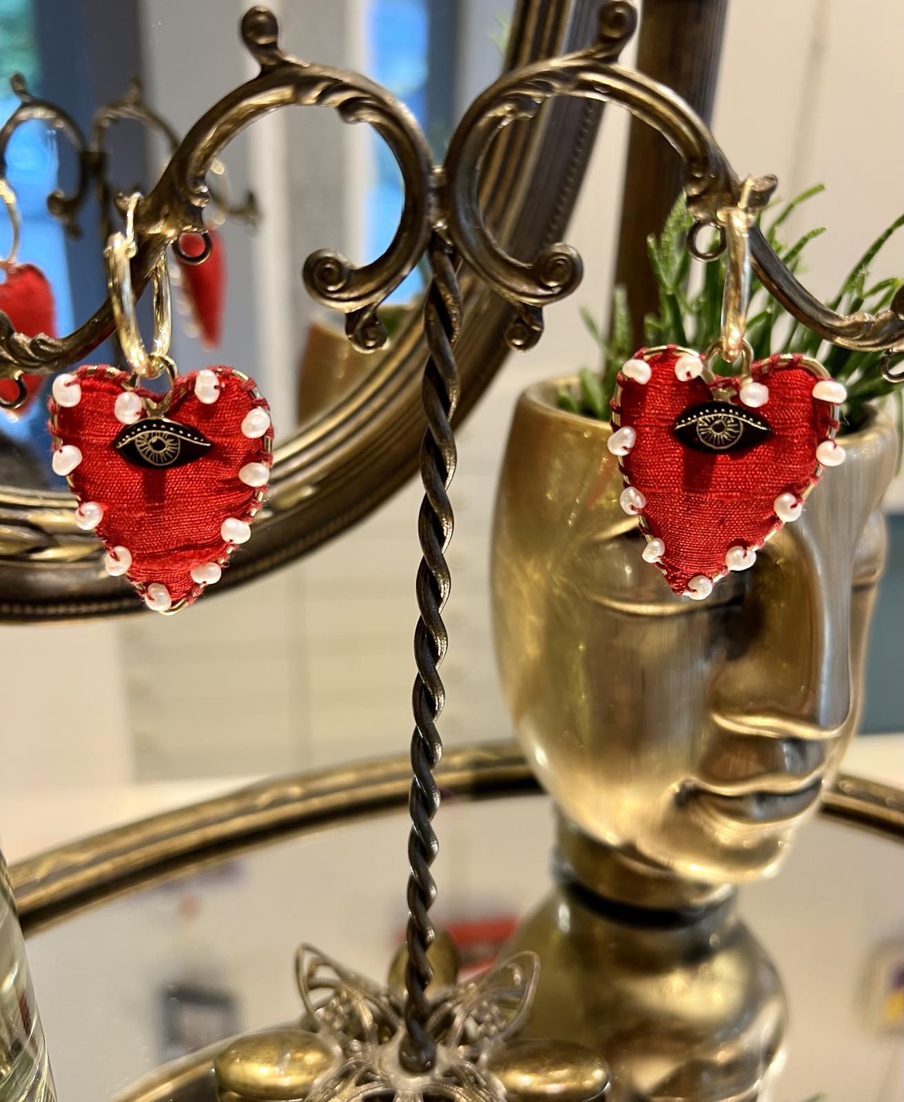 Fabric heart earrings