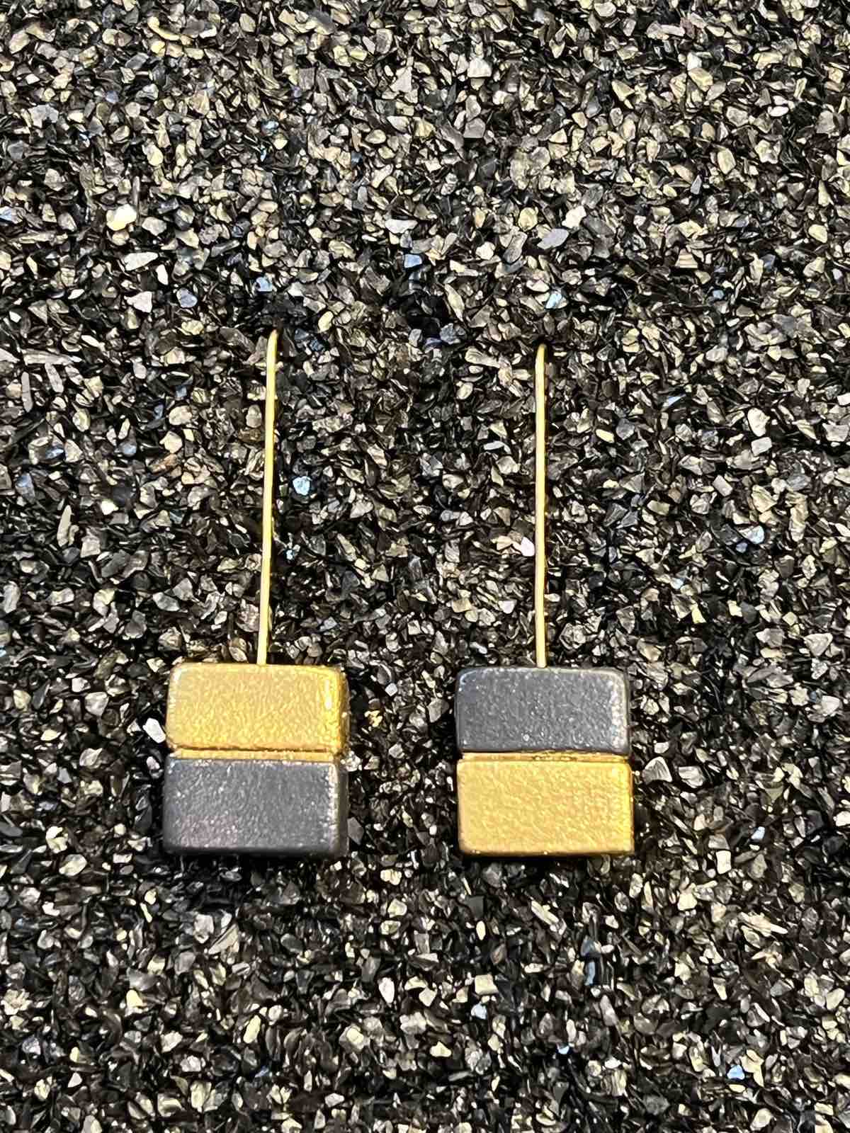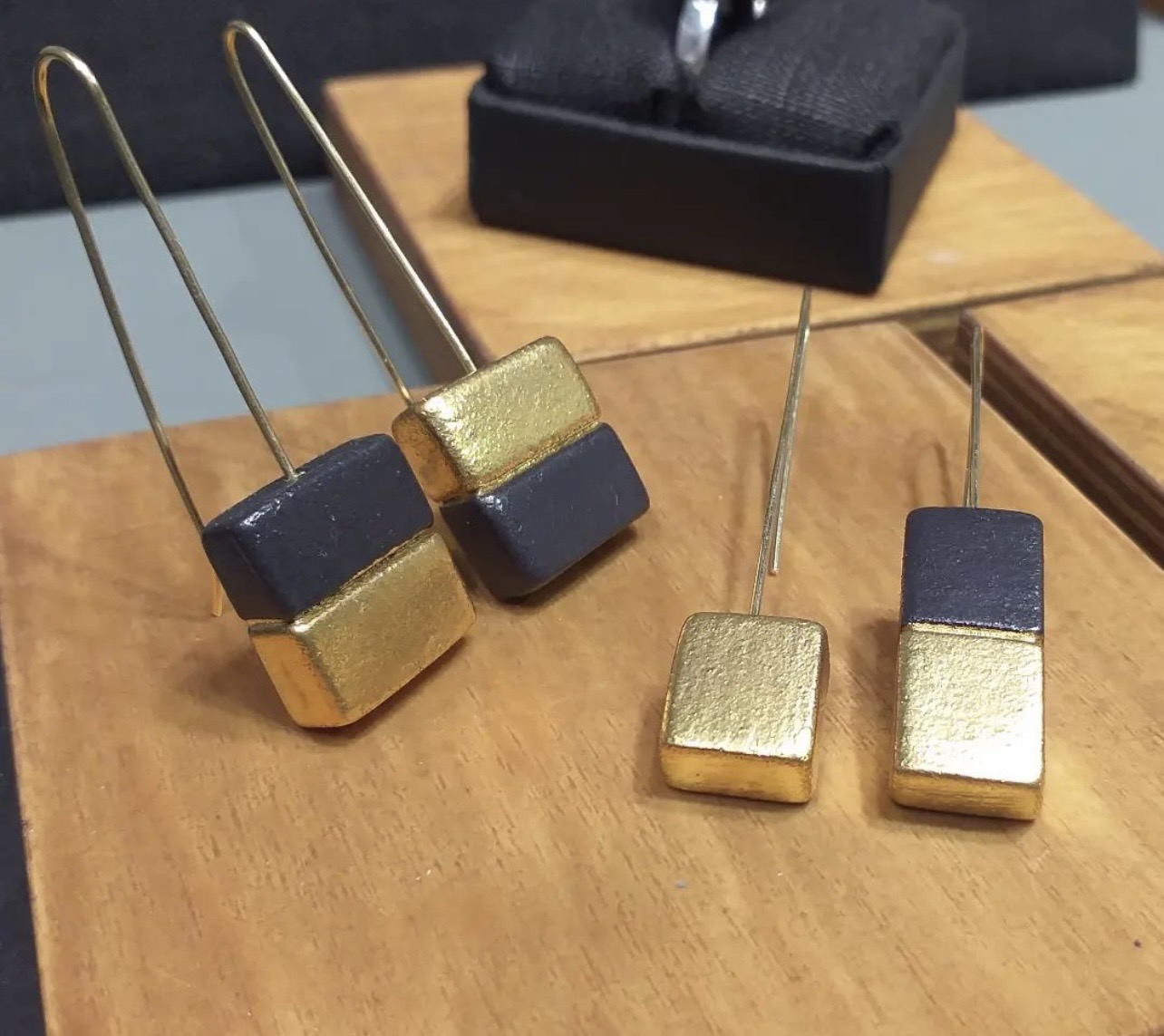 Ceramic earrings white-gold leaf
