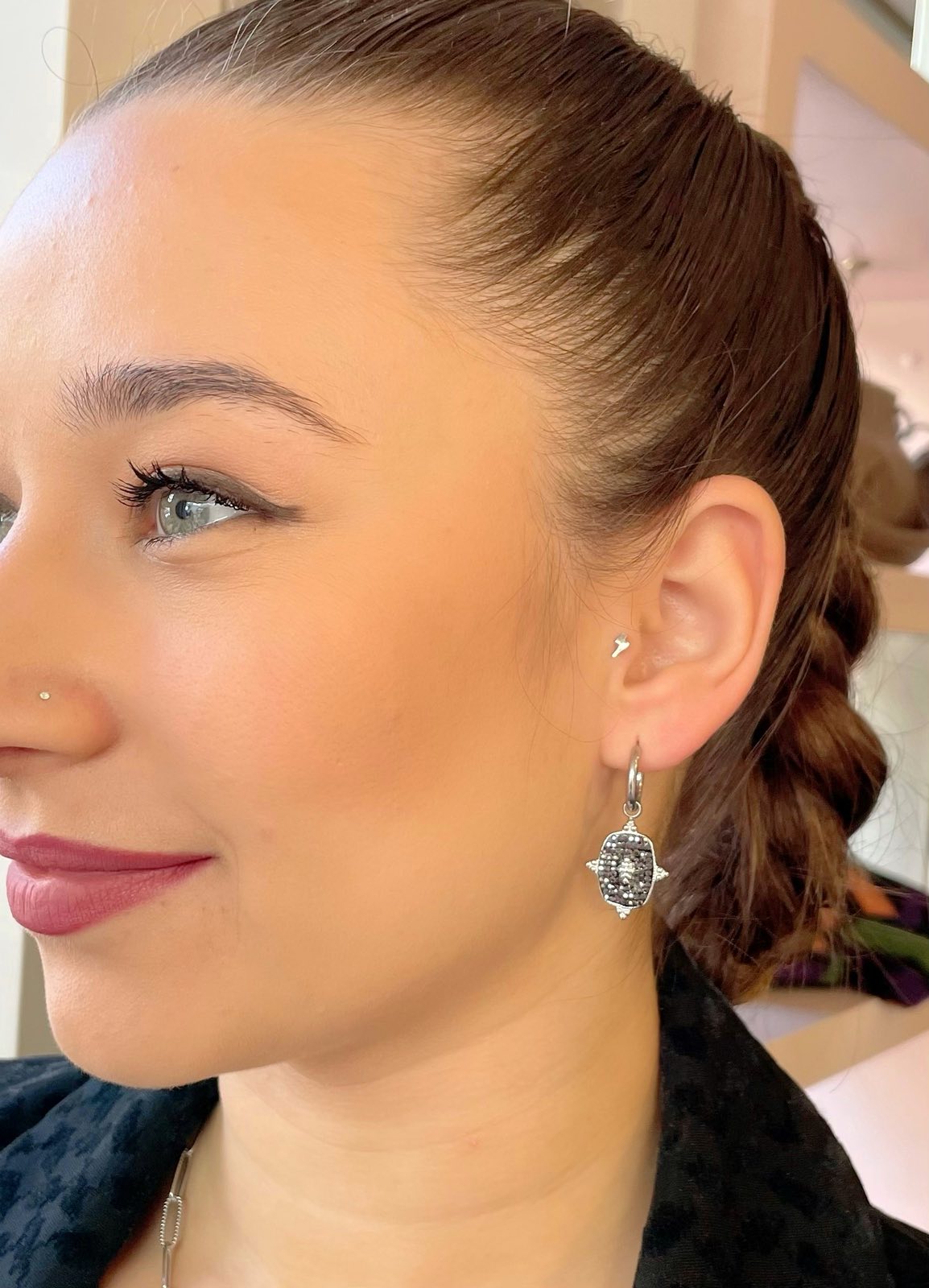 Σκουλαρίκια κρεμαστά με σχέδιο και στρας