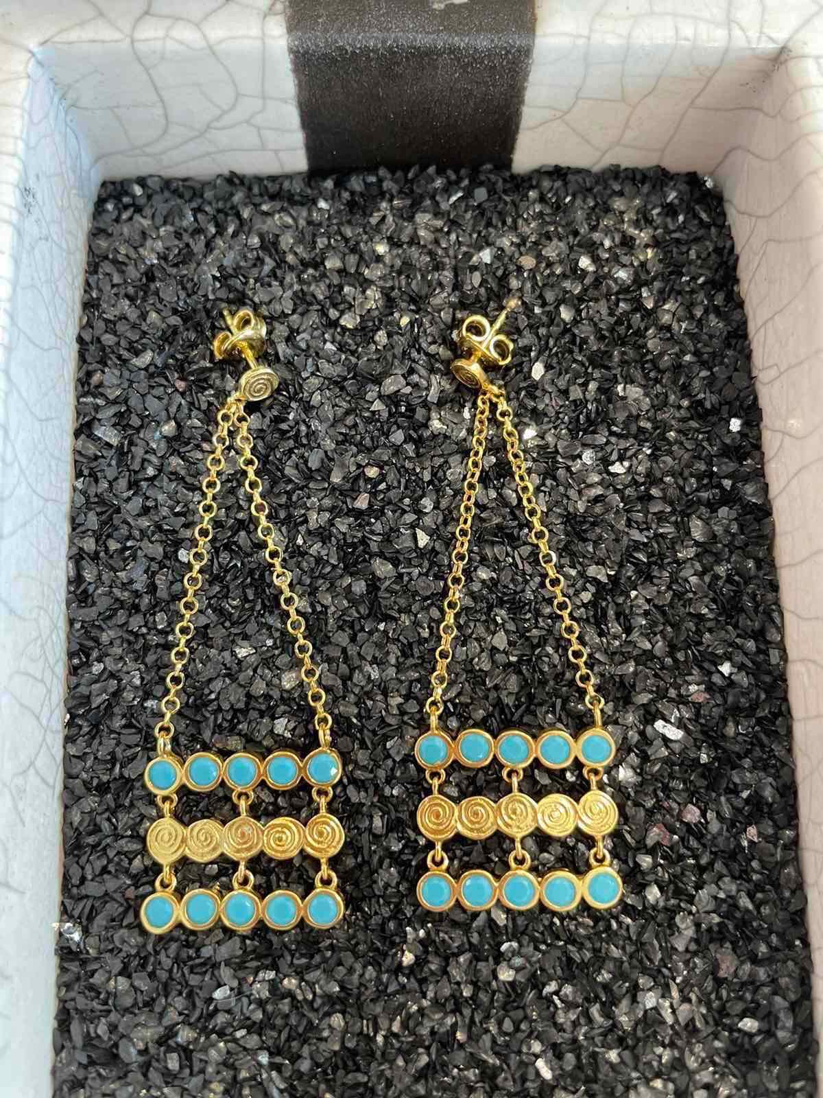 Σκουλαρικι μακρυ με μπλε χαντρες