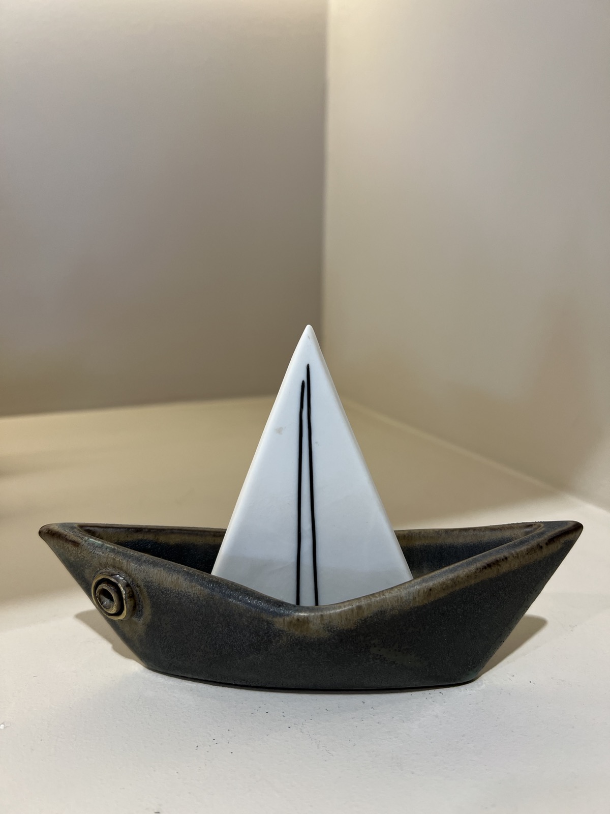 Gray-white ceramic boat