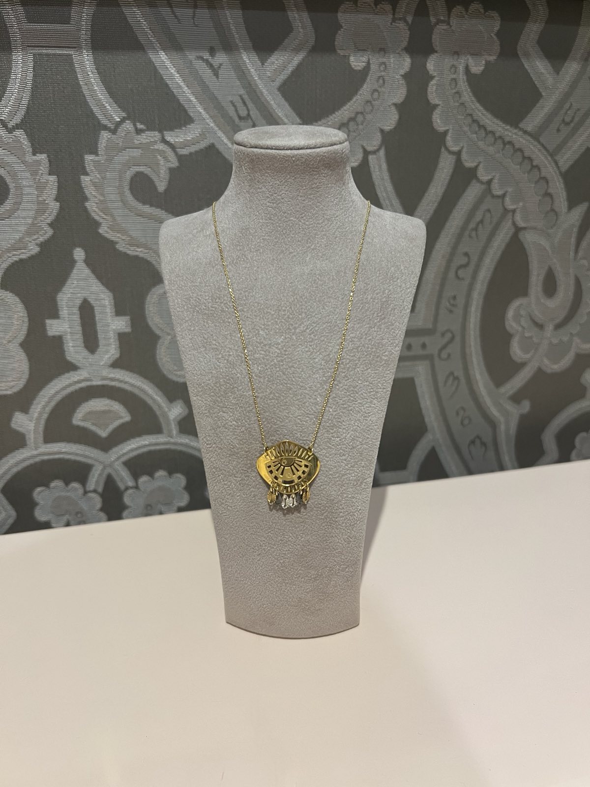 Χειροποίητο κολιέ από ασήμι επιχρυσωμένο με μάτι χαραγμένο.